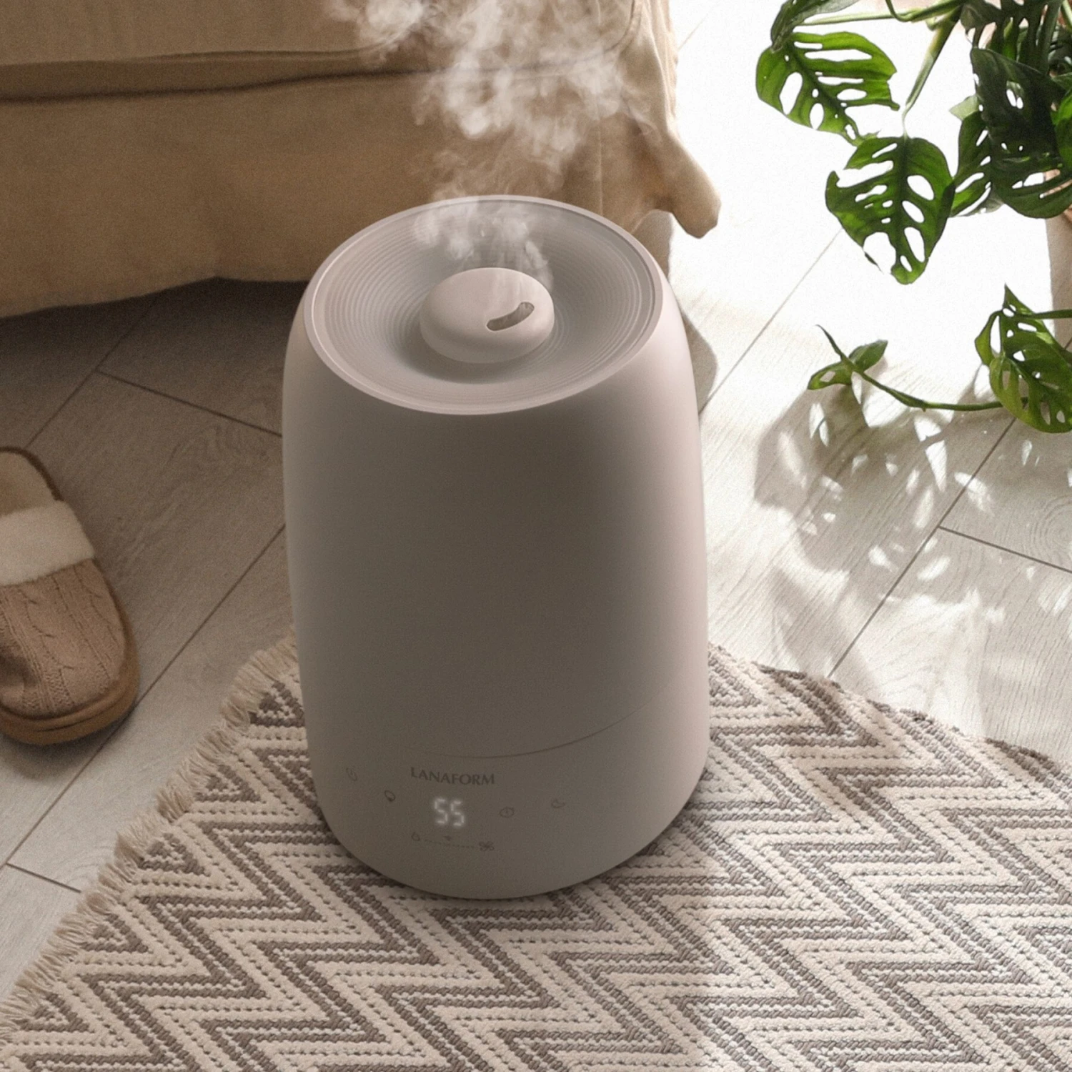 De luchtbevochtiger kan ook worden bediend via de Lanaform Connect applicatie. De applicatie is eenvoudig te downloaden en te gebruiken en heeft een visuele interface voor het bewaken en regelen van de luchtkwaliteit vanaf elke plek ter wereld,