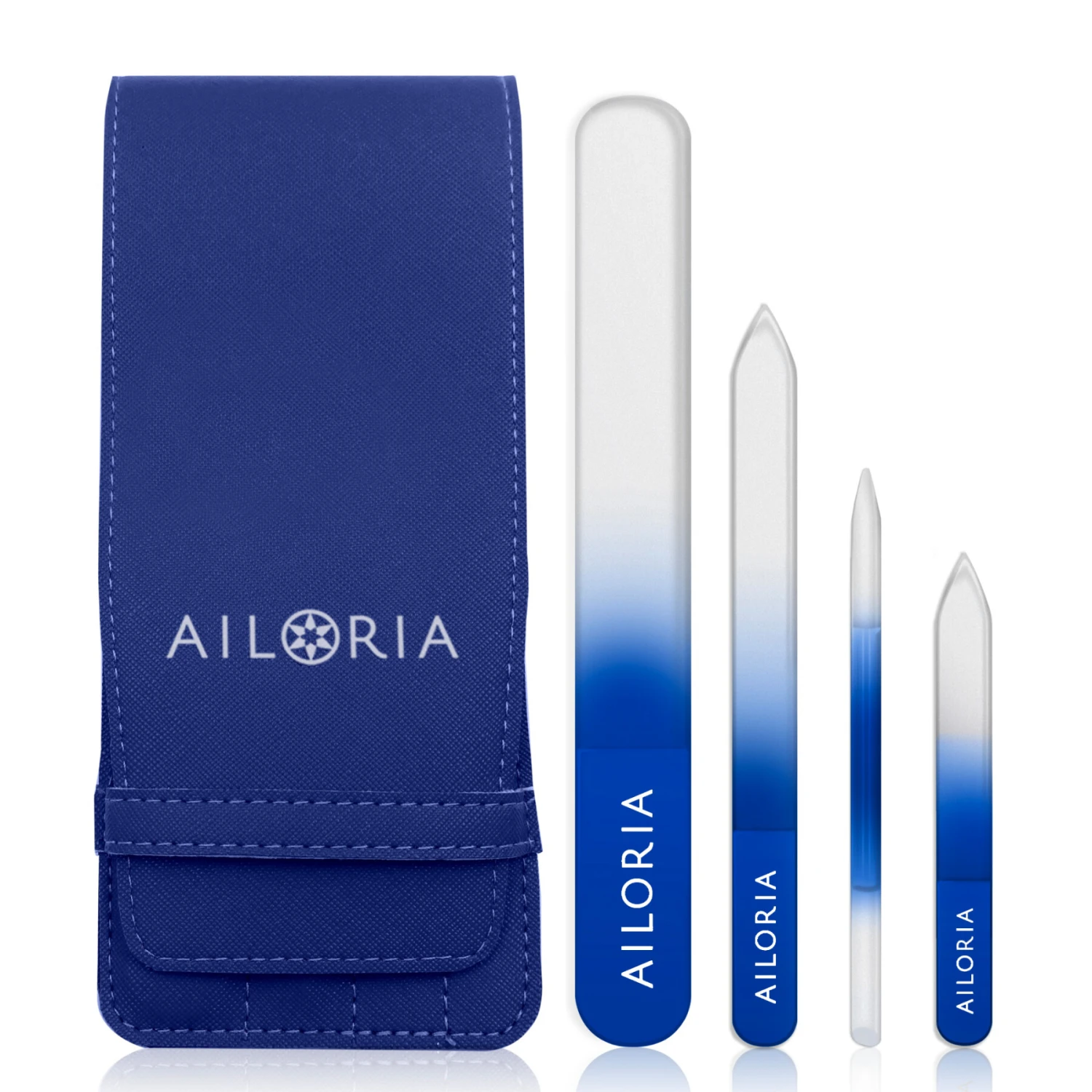 4 hoogwaardige glazen nagelvijlen met kunstlederen etui