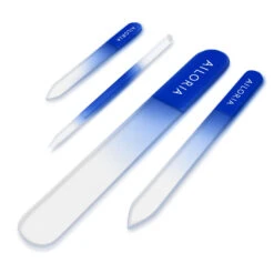 De kit CONTOUR, geleverd met bijpassend etui, bevat 1 ronde en 3 platte nagelvijlen, handig om te voorkomen dat je nagels barsten of breken dankzij hun microfijne schurende oppervlak. Je kunt je nagels precies in de gewenste vorm vijlen. Glazen vijlen zijn ook geschikt voor zeer dikke en broze nagels, omdat ze zacht werken en de nagel niet beschadigen. Je kunt ze gebruiken voor zowel manicure als pedicure, op natuurlijke nagels of kunstnagels.